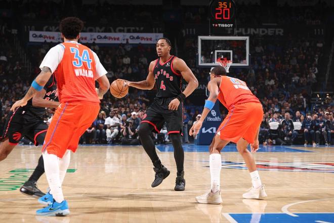 雷霆上一場主場114-117爆冷惜敗步行者,猛龍過去3場連續客場戰勝勇士、國王與開拓者收獲3連勝。本場雷霆缺少杰倫、米切爾、哈爾滕施泰因、卡魯索,猛龍缺少珀爾特爾與博伊爾斯。首節開局雷霆1-7落后,雷霆回敬一波7-0攻勢反超比分,雙方交替領先纏斗至雷霆10-9,猛龍連得4分反超比分。雙方繼續纏斗逐步維持雷霆21-18領先,巴恩斯兩罰全中,雷霆多點開花取得7分優勢,謝德中投追分,首節結束雷霆30-25領先猛龍。首節雷霆20中10,其中三分12中4,亞歷山大3中2得到6分;猛龍23中9,其中三分9中3,英格拉姆7中2得到4分與奎克利9分。