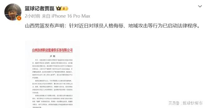 另外,值得一提的是,在迪亞洛和潘江被處罰不久后,山西男籃也在深夜強(qiáng)勢回?fù)袅恕a槍ι轿麝犜谳斍蚝螅蟻喡搴团私热嗽獾骄W(wǎng)絡(luò)上少數(shù)極端球迷的辱罵,山西隊也采取了強(qiáng)勢反擊。目前,他們已經(jīng)啟動法律程序,對于侮辱和攻擊山西隊球員和主教練的網(wǎng)友,他們將采取行動。在這里,我們也呼吁雙方球迷應(yīng)該理性看球,不要將不文明的動作與言語放到網(wǎng)絡(luò)上,甚至是攻擊雙方球員身上。