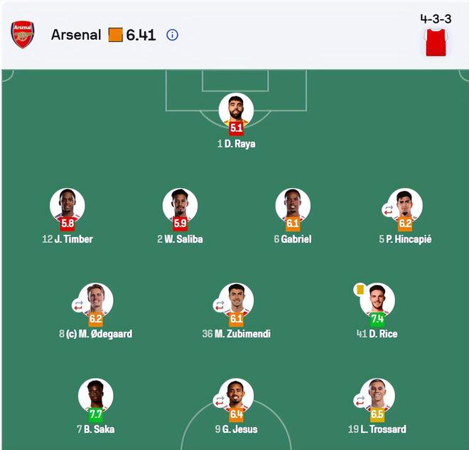 阿森納在第28分鐘率先破門,薩卡右路精準挑傳,厄德高抽射打在曼聯門將馬丁內斯腳上折射入網。主場球迷陷入狂歡,似乎預示著又一場屬于槍手的勝利。在此之前他們機會相對更多,似乎比賽在向阿爾特塔預計的方向走。