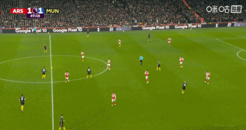 第50分鐘,曼聯(lián)反超比分。B費(fèi)中路和多古連續(xù)做撞墻配合,隨后弧頂多爾古遠(yuǎn)射世界波破門,阿森納1-2曼聯(lián)。
