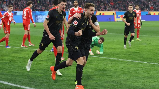 但是下半場比賽,場上卻風云突變,先是第75分鐘,拜仁門將烏爾賴希在防守角球時出現失誤,奧格斯堡后衛查韋斯輕松把皮球頂入空門,將比分扳為了1-1。6分鐘后,客隊又打出一次犀利反擊,馬森戈接隊友的傳中推射破網,2-1!奧格斯堡不可思議般地將比分逆轉!此后的比賽里,雖然拜仁展開了瘋狂反撲,但是由于比賽時間所剩無幾,他們還是沒能挽回敗局。最終奧格斯堡爆冷以2-1戰勝了拜仁,終結了對手聯賽18場不敗的紀錄。
