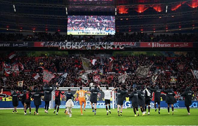 北京時(shí)間1月 24日,德甲第19輪,勒沃庫(kù)森1-0云達(dá)不萊梅。在比賽臨近結(jié)束時(shí),勒沃庫(kù)森球迷在球場(chǎng)中高喊:“不敗冠軍,勒沃庫(kù)森!”
