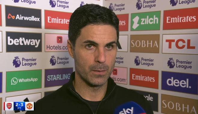 英超第23輪,阿森納主場2-3不敵曼聯,賽后,槍手主帥阿爾特塔接受了天空體育的采訪。
