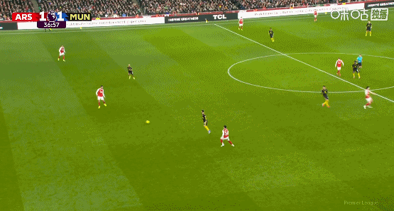 第29分鐘,薩卡右路挑傳,厄德高掃向門前,廷伯在與利馬爭搶中造成后者烏龍!阿森納1比0領先曼聯!